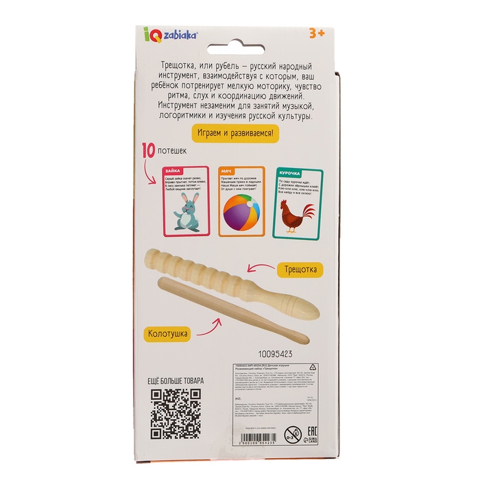 Развивающий набор «Трещотка» — русский народный инструмент, с которым ребёнок потренирует моторику, чувство ритма, слух и координацию движений.