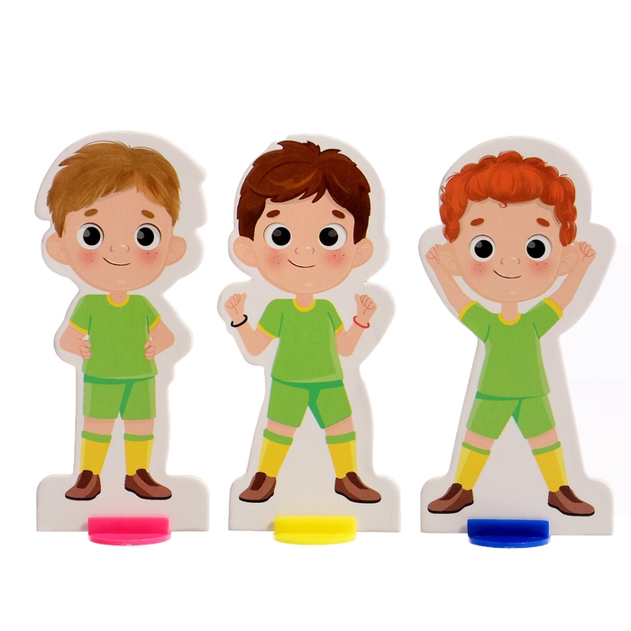 - На футболистах в синих и зелёных футболках напишите твёрдые и мягкие согласные, которые вы хотите проработать с ребёнком.