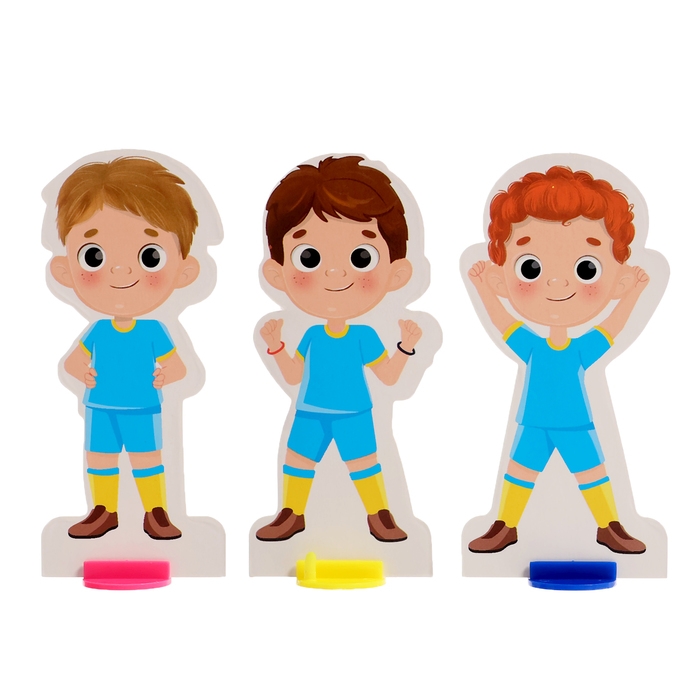 - Вставьте фигурки футболистов в пластиковые подставки, затем расположите человечков на игровом поле.