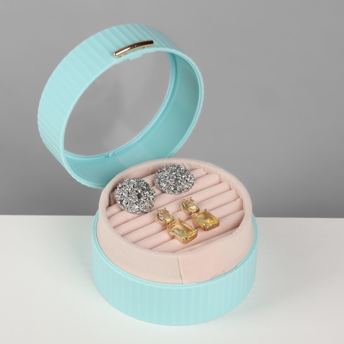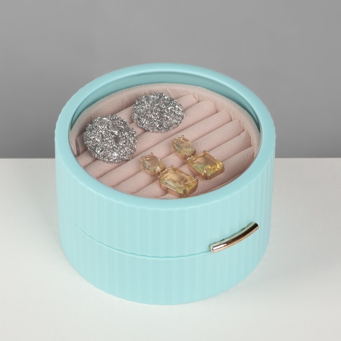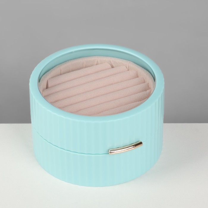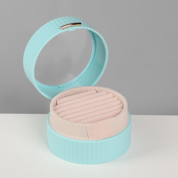 Подставка под кольца «Шкатулка портативная», круг, 7 полос, 9×9×5,5 см, цвет голубой