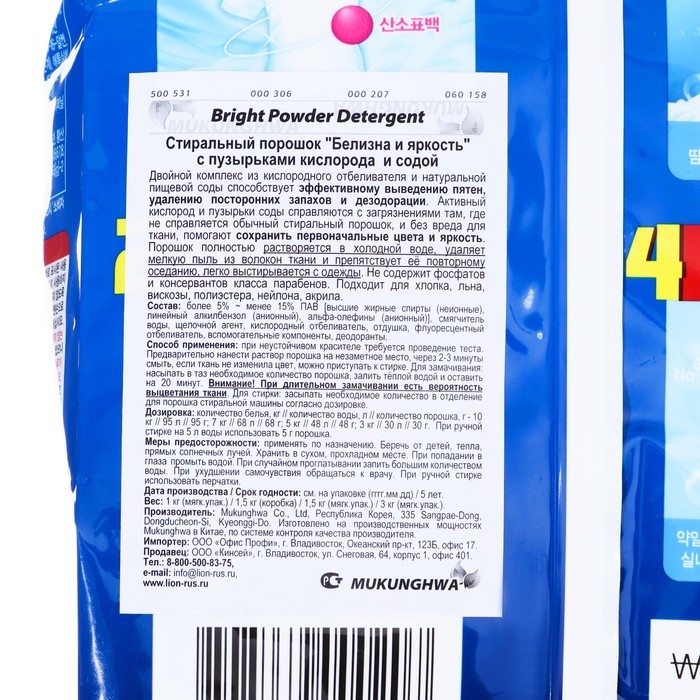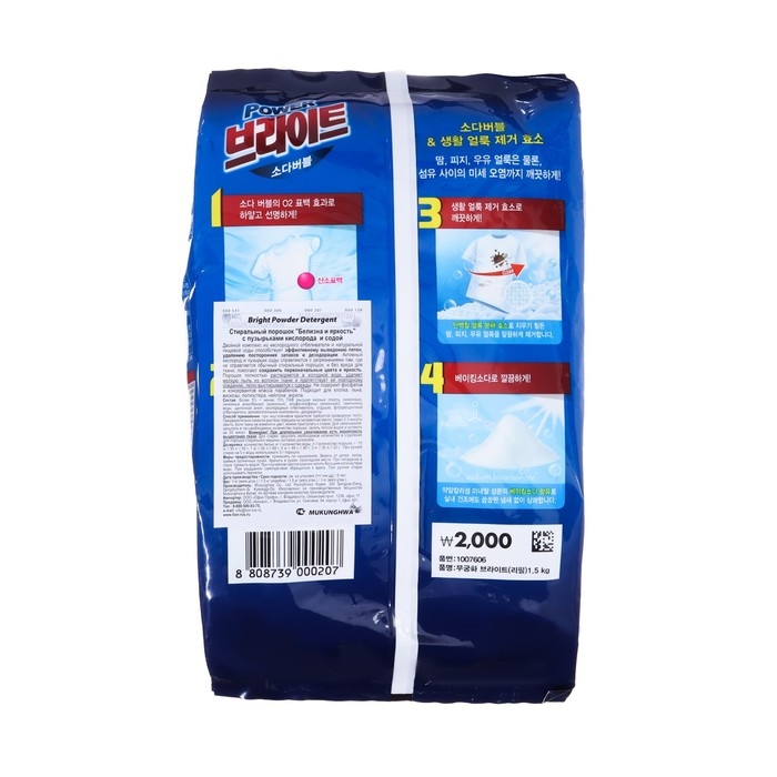 Стиральный порошок MUKUNGHWA "Белизна и яркость", мягкая упаковка, 1,5 кг