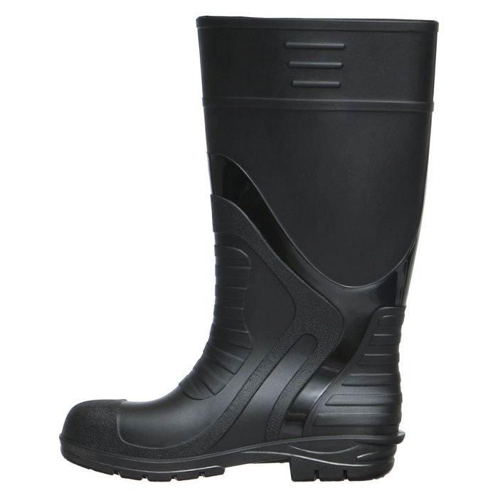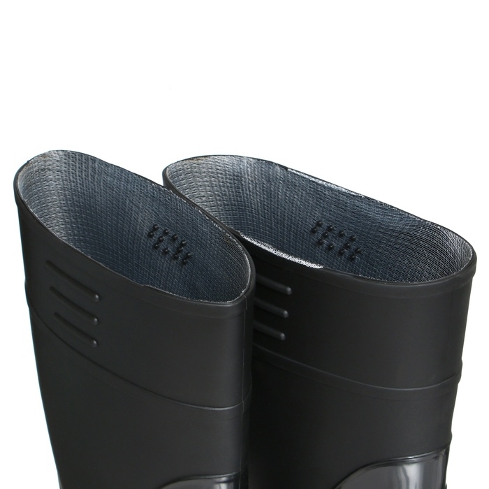 Сапоги специальные, рабочие, унисекс, изготовлены из ПВХ и предназначены для защиты ног от промокания и загрязнений. Выполнены по технологии двухкомпонентного литья методом горячего формования, внутри — тканевое покрытие. Протектор подошвы обладает противоскользящими свойствами. Сапоги удобны и практичны. Нижний температурный предел — -5ͦ. Имеется манжета (надставка) из водоотталкивающей ткани с фиксатором. Высота сапога 42 см. Сапоги изготавливаются с использованием цветных текстильных чулок.