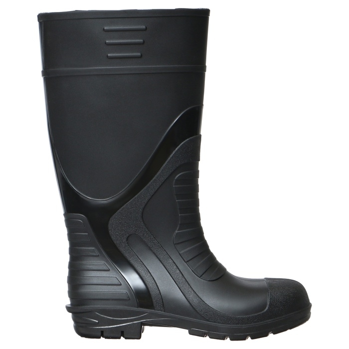 Сапоги мужские изготовлены из ПВХ и предназначены для защиты ног от промокания и загрязнений. Выполнены по технологии однокомпонентного литья методом горячего формования, внутри — тканевое покрытие. Протектор подошвы обладает противоскользящими свойствами. Сапоги удобны и практичны. Нижний температурный предел — -5ͦ. Выполняется с использованием цветных текстильных чулок.