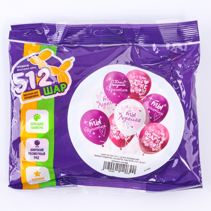 Шар латексный 12" «С днём Рождения! Моей подруге», ассорти, 2 ст., набор 25 шт., МИКС