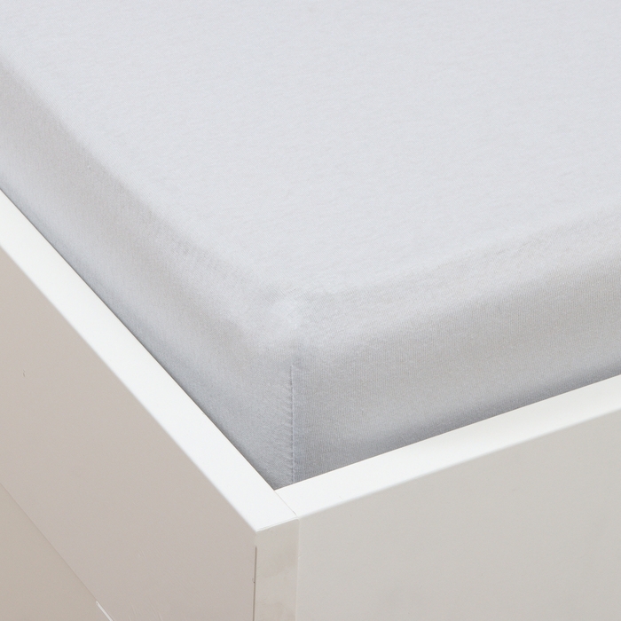 Трикотажная простыня на резинке 120х200х20см, св серый, кулирка 120г/м, хл100%