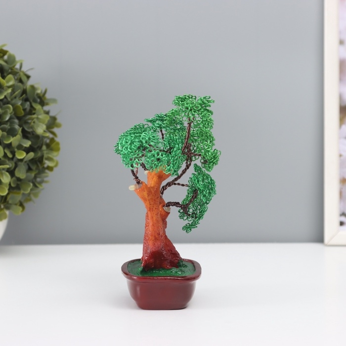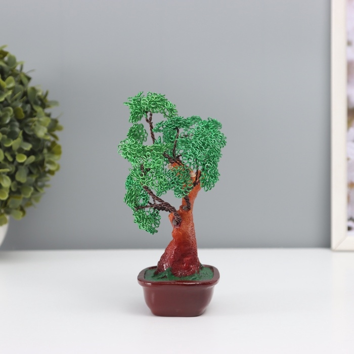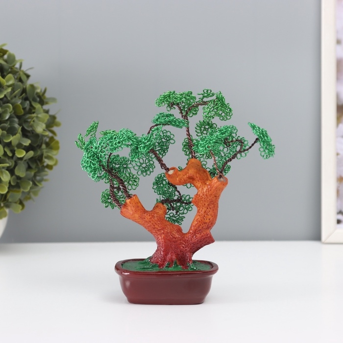 Сувенир бонсай полистоун, металл "Дерево счастливой жизни" зелёное 8х17х16 см