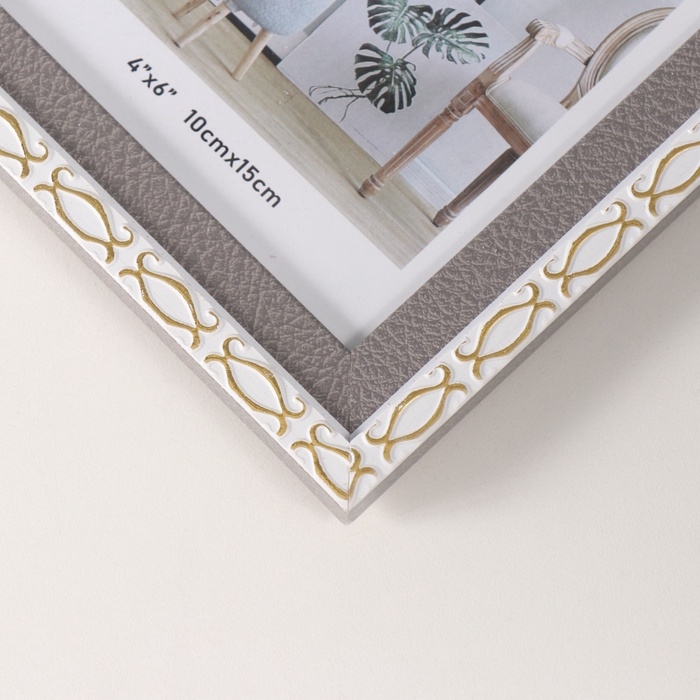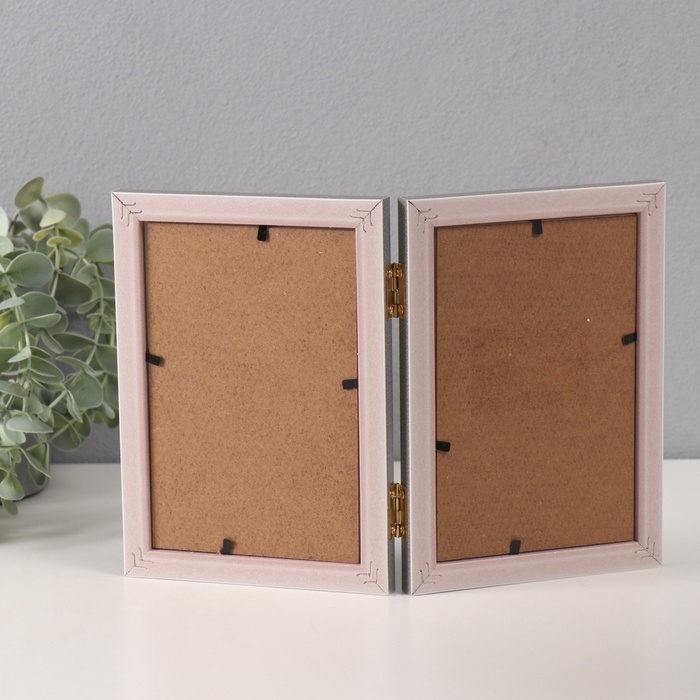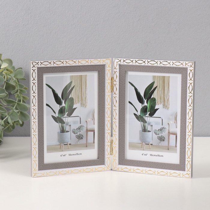 Фоторамка пластик на 2 фото 10х15 см "Золотые скобочки. Двойная" серая