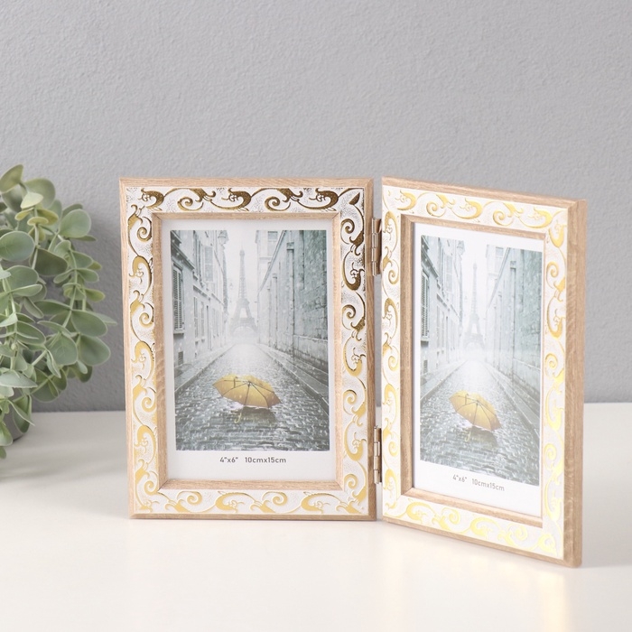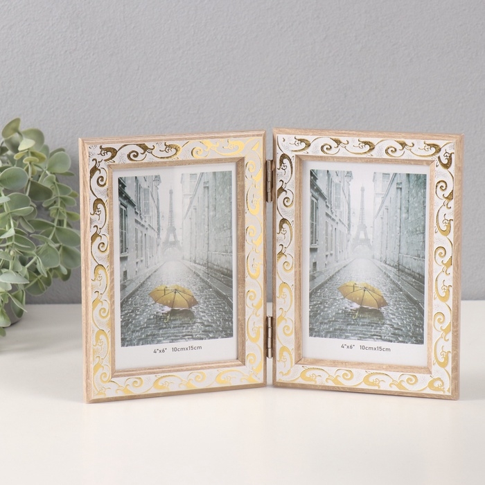 Фоторамка пластик на 2 фото 10х15 см "Золотой вьюнок на белом"