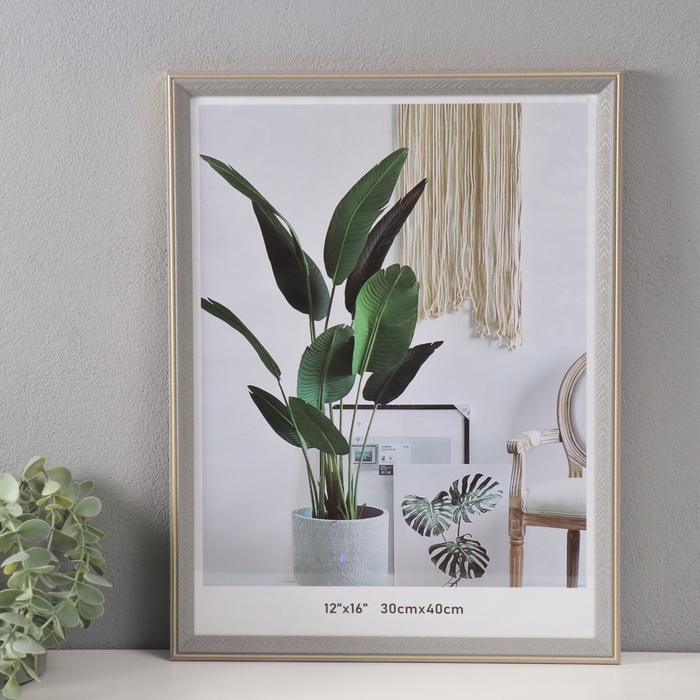 Фоторамка пластик 30х40 см "Галочки на мокко" с золотой обводкой 1,4х32,7х42,5 см