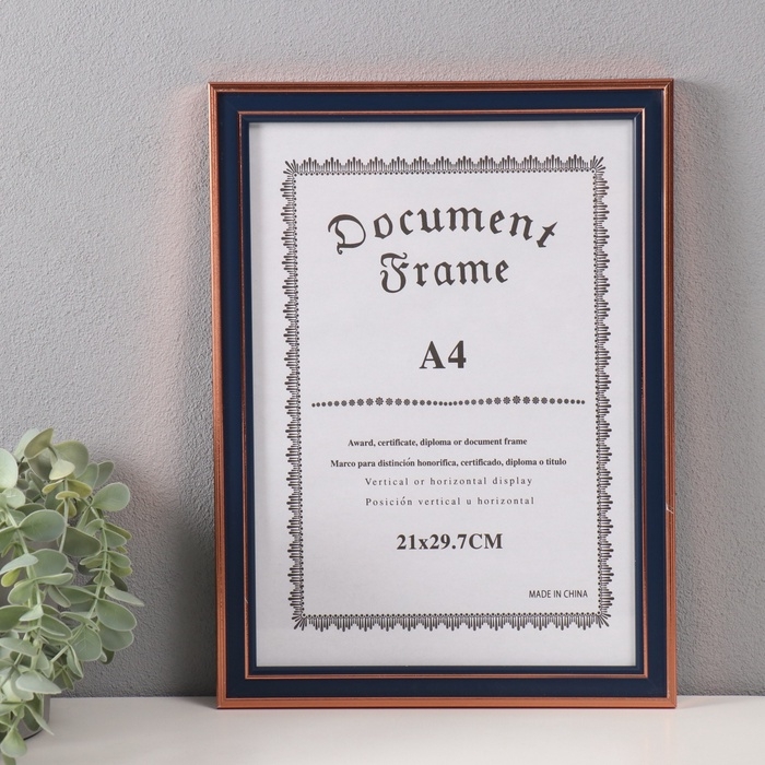 Фоторамка пластик формат А4 "Тёмно-синяя с медной обводкой" 1,4х24,2х32,9 см