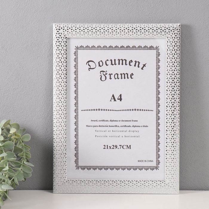 Фоторамка пластик формат А4 "Серебристые кристаллы" белая 1,3х25,4х34,1 см