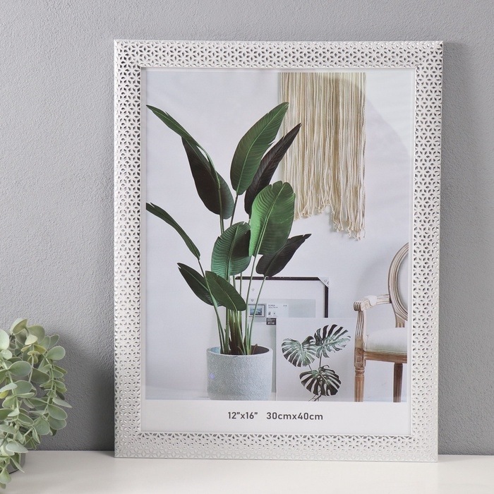 Фоторамка пластик 30х40 см "Серебристые кристаллы" белая 1,3х34,4х44,4 см