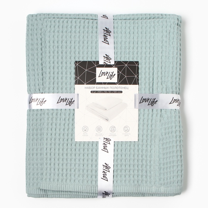 Набор банных полотенец LoveLife "Waffle mint" 2 шт: 100х150, 50х100 см., 100% хл