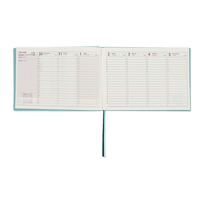 Еженедельник датированный 2025 года, 181х127 мм, 64 листа ESCALADA, мягкая обложка из искусственной кожи, блинтовое тиснение, кремовый блок 70 г/м², зелёный
