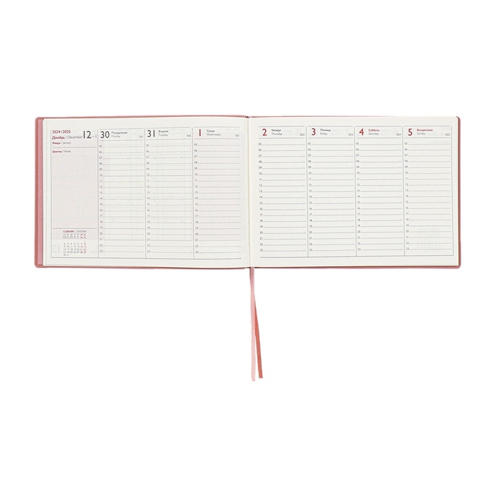 Еженедельник датированный 2025 года, 181х127 мм, 64 листа ESCALADA, мягкая обложка из искусственной кожи, блинтовое тиснение, кремовый блок 70 г/м², розовый