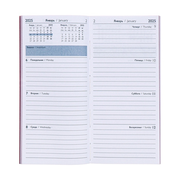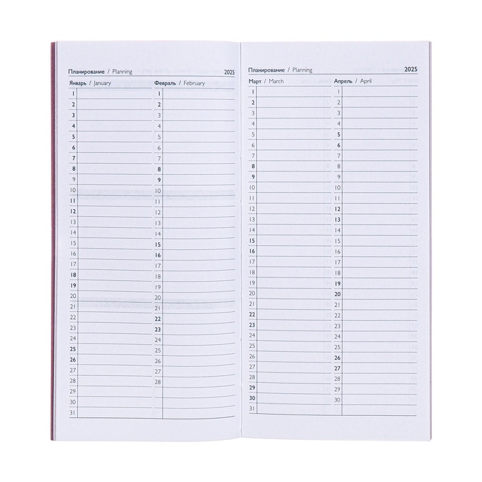 Еженедельник датированный 2025 года, 80х165 мм, 64 листа ESCALADA, мягкая обложка из искусственной кожи, блинтовое тиснение, блок 70 г/м², сиреневый
