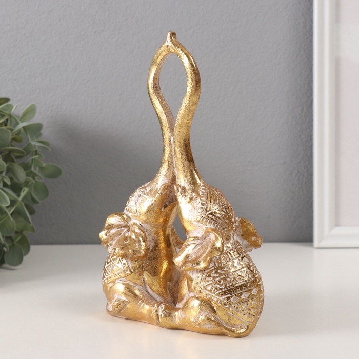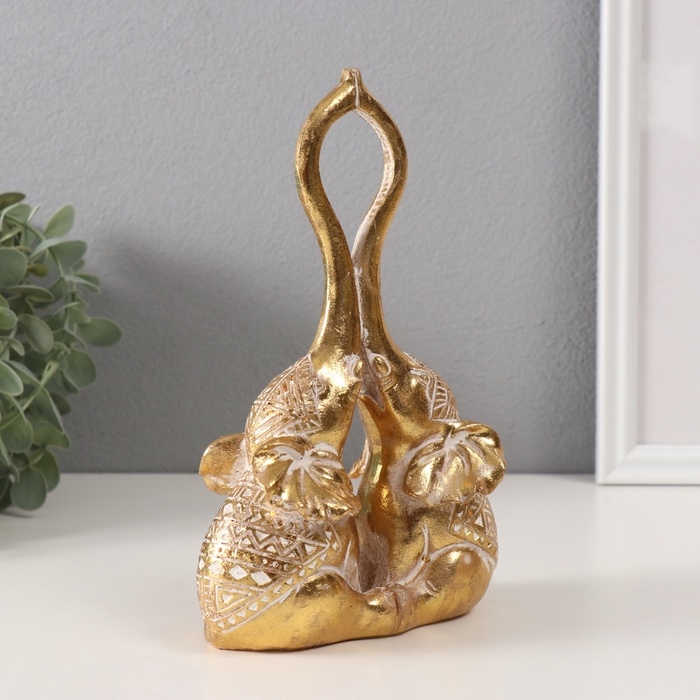Сувенир полистоун "Слоны - прикосновение. Индейские узоры" золото 13х6,7х19,8 см