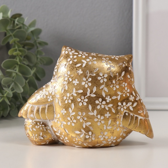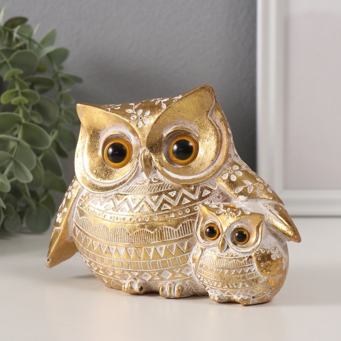 Сувенир полистоун "Золотой филин с птенцом" геометрические узоры 15,2х6х11 см