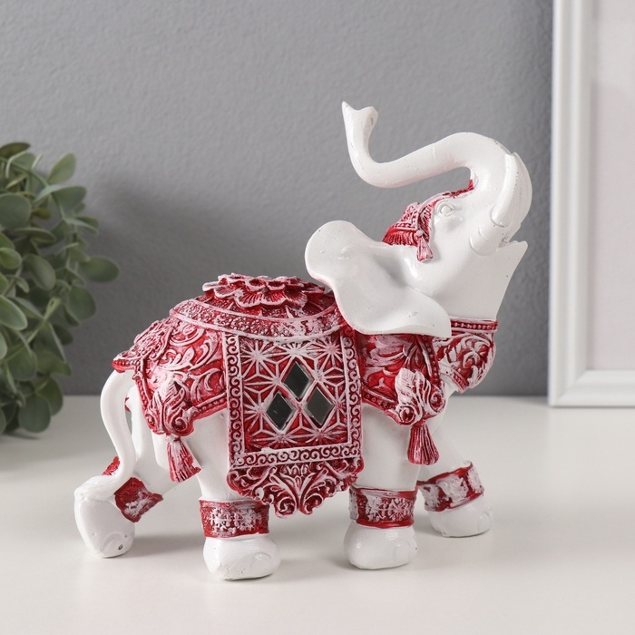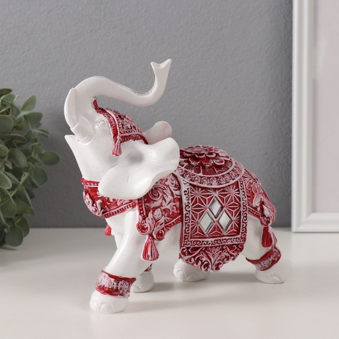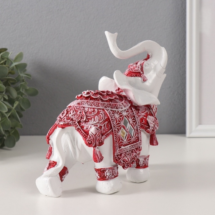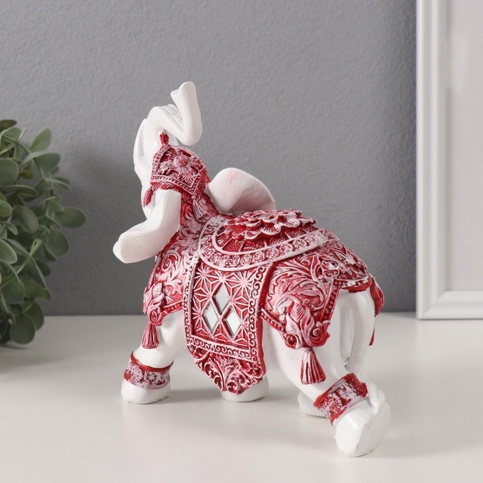 Сувенир полистоун "Белый слон. Бордовая попона с цветком и стразой" 17,5х9х17 см