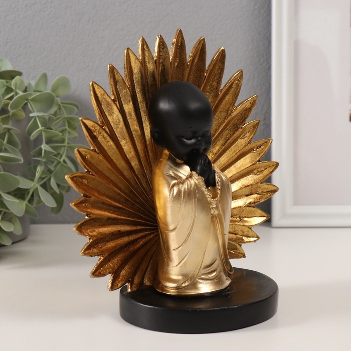 Сувенир полистоун "Маленький хотей - молитва. Пальмовый лист" золото и чёрный 18х9х18 см