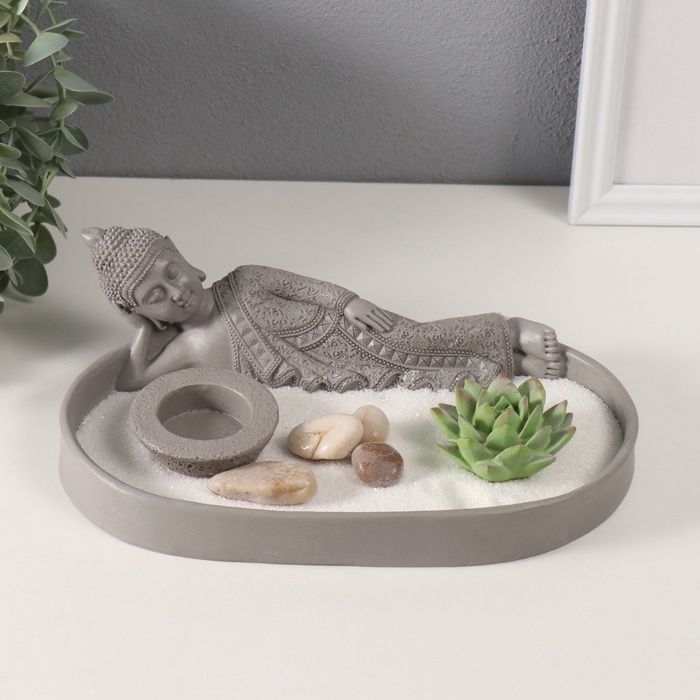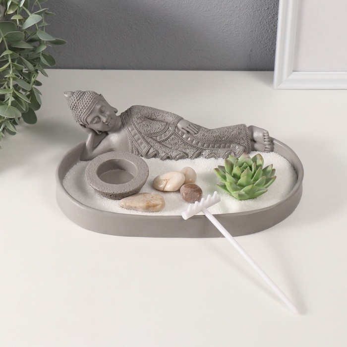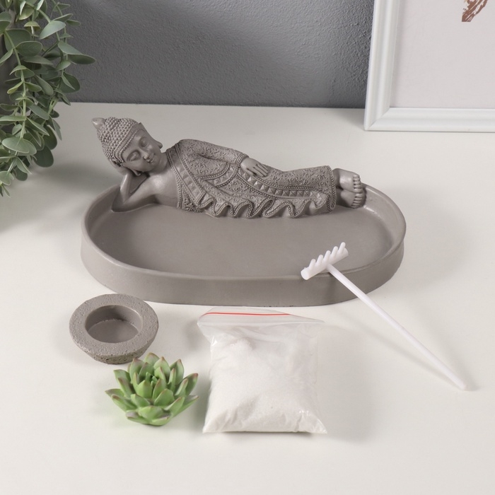 Сад Дзен "Статуя лежащего будды" серый, песок 25х15,5х8 см