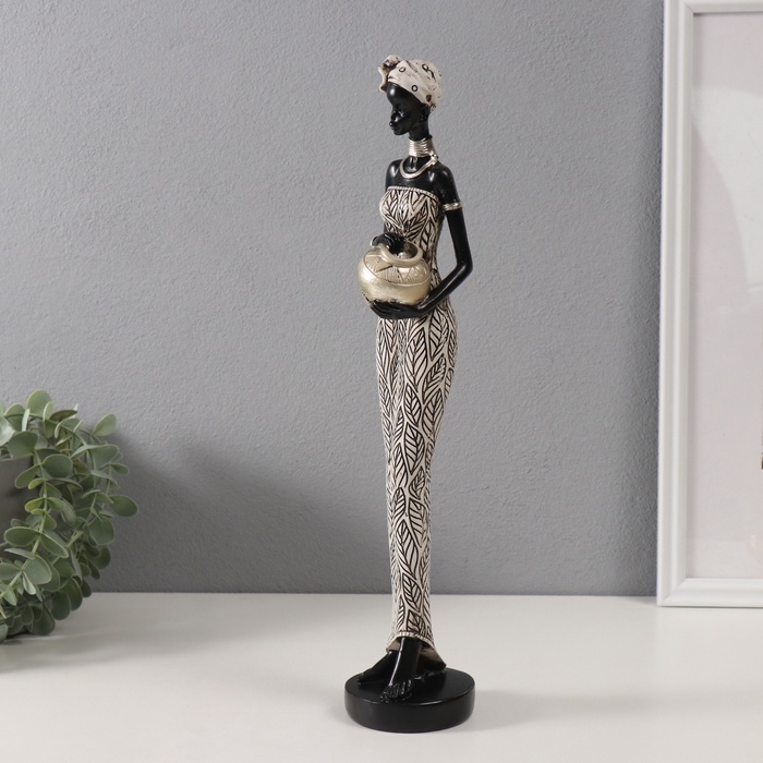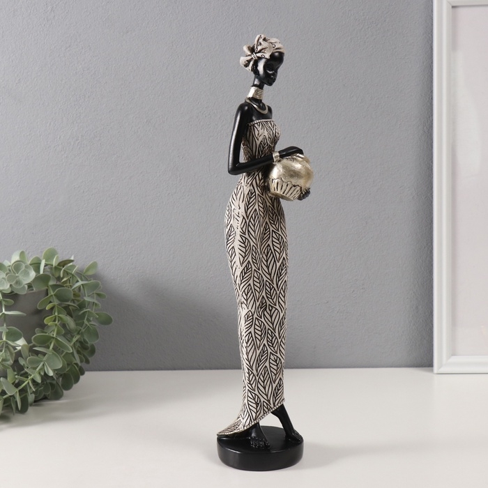 Сувенир полистоун "Африканка в платье с листьями, с горшком" белый с чёрным 8,5х8х39 см