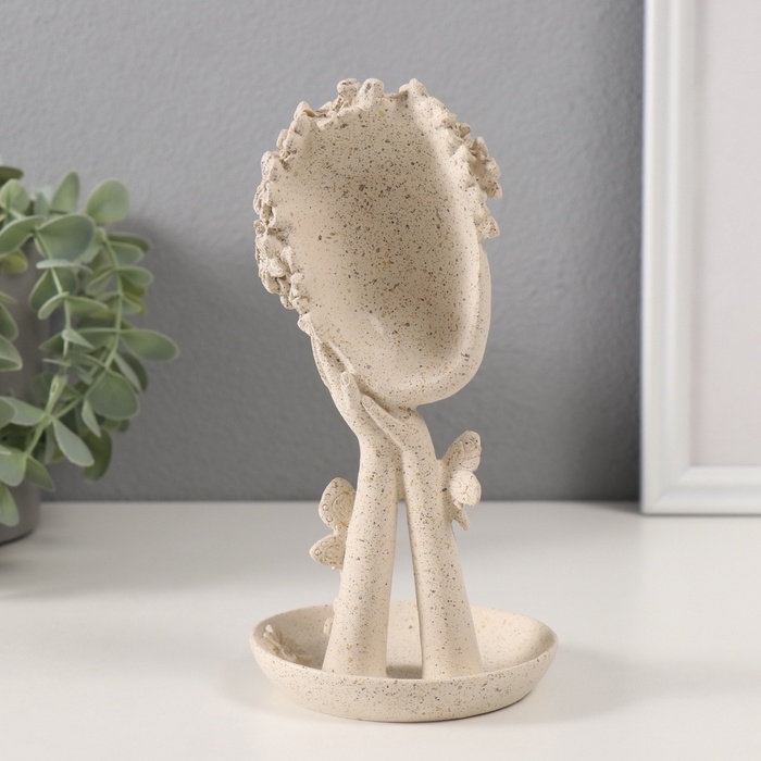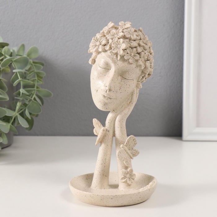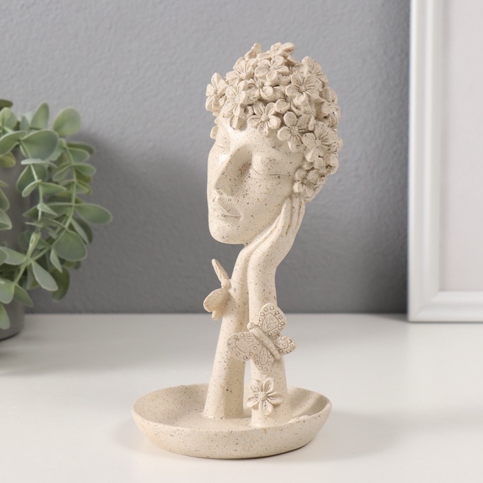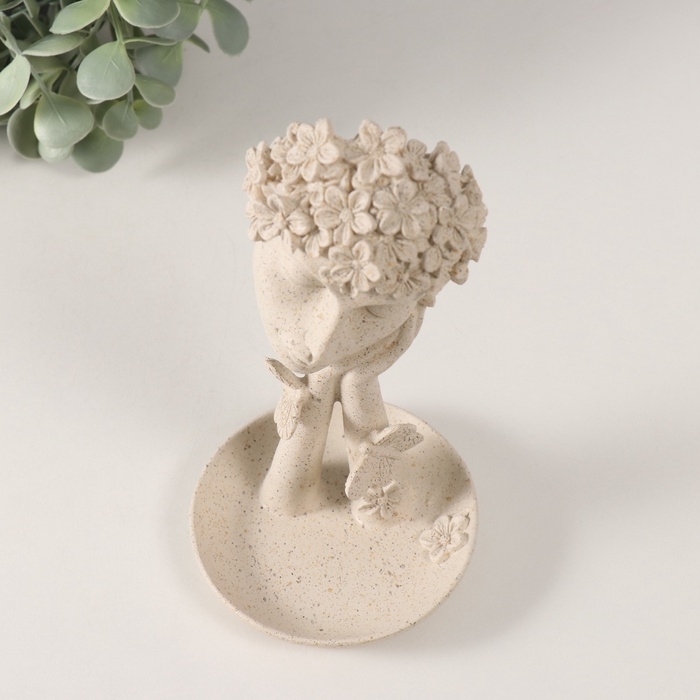 Сувенир полистоун подставка "Девушка с цветами на голове" белый в крапинку 9,5х9,5х18,5 см 1032346