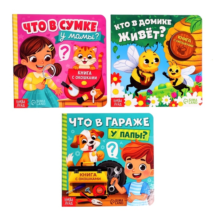 Картонные книги с окошками «Что внутри?», набор 3 шт. по 12 стр.