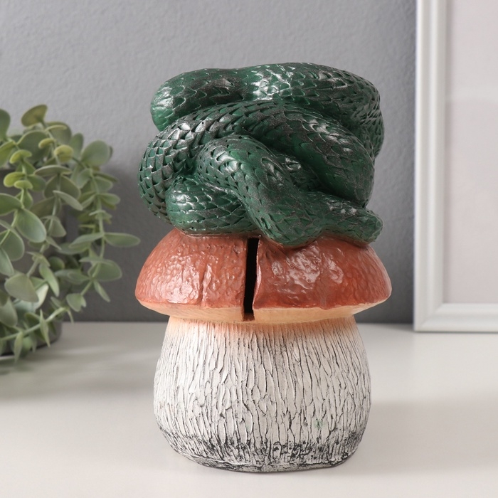 Копилка "ЗМЕЙКА НА ГРИБЕ" 11 х11 х 18 см.