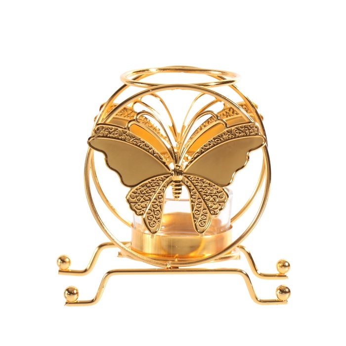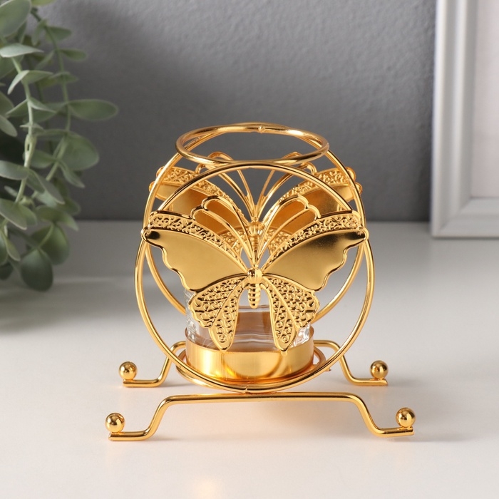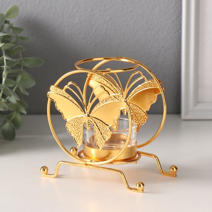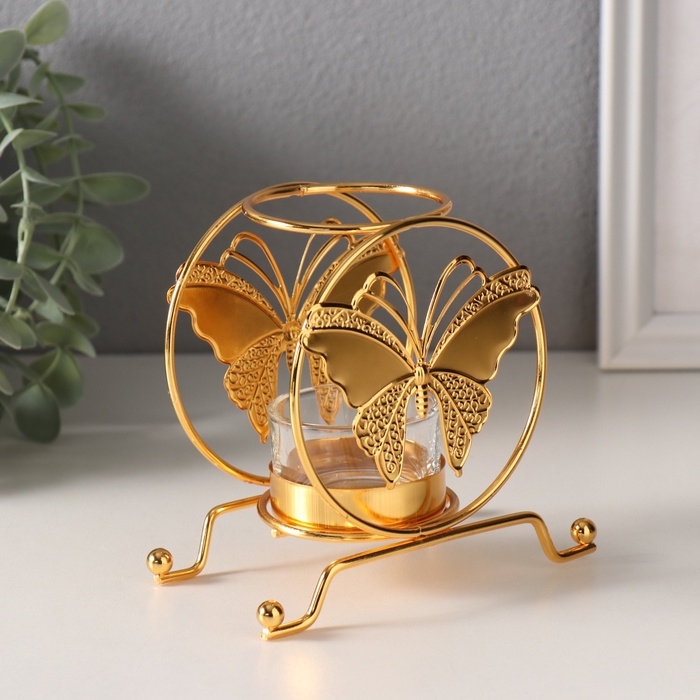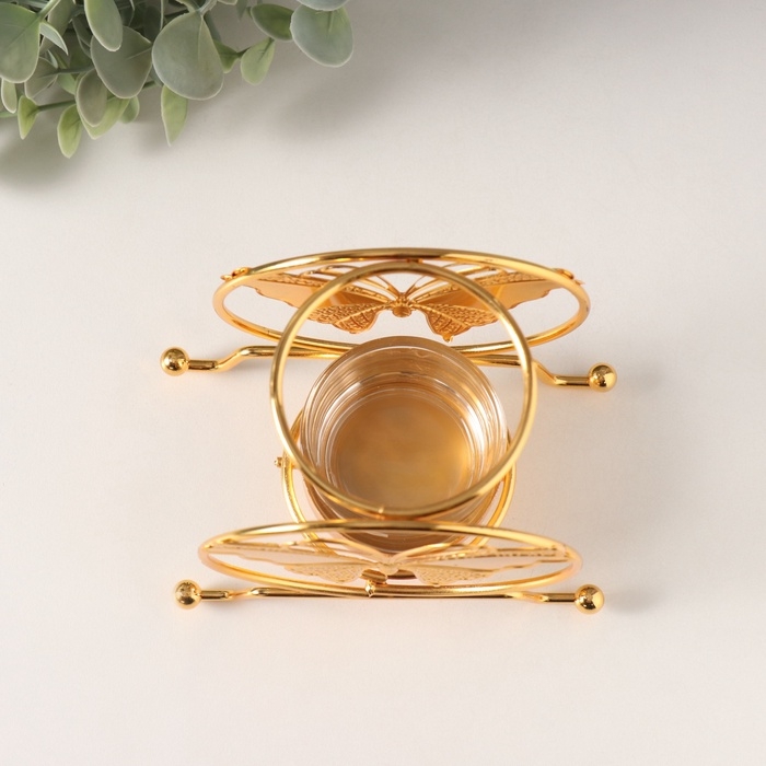 Подсвечник металл на 1 свечу "Бабочка в круге" d=4,5 см золото 6,2х11,2х10,5 см