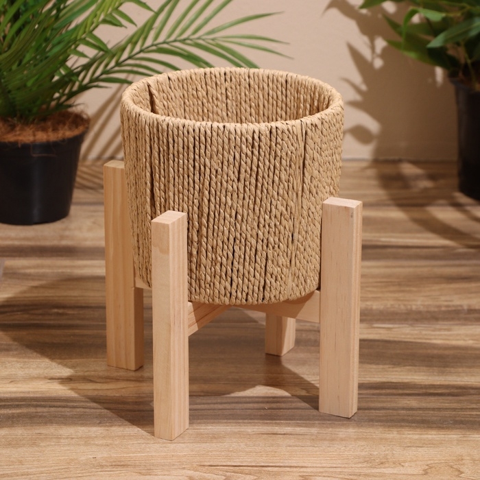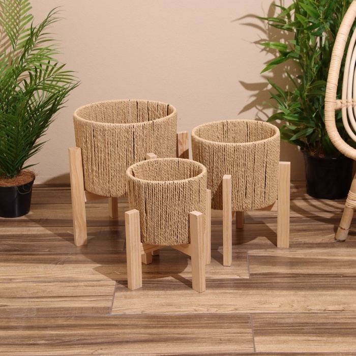 Набор плетёных кашпо, 3 шт, 29х29х22 см, цв. тёмно-бежевый