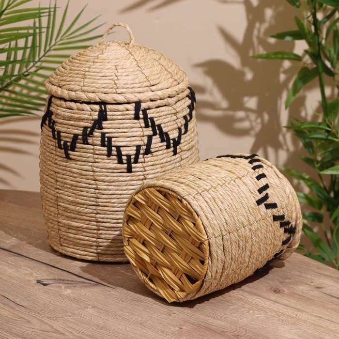 Набор плетёных корзин с крышкой, 27х24х24/22х18х18 см