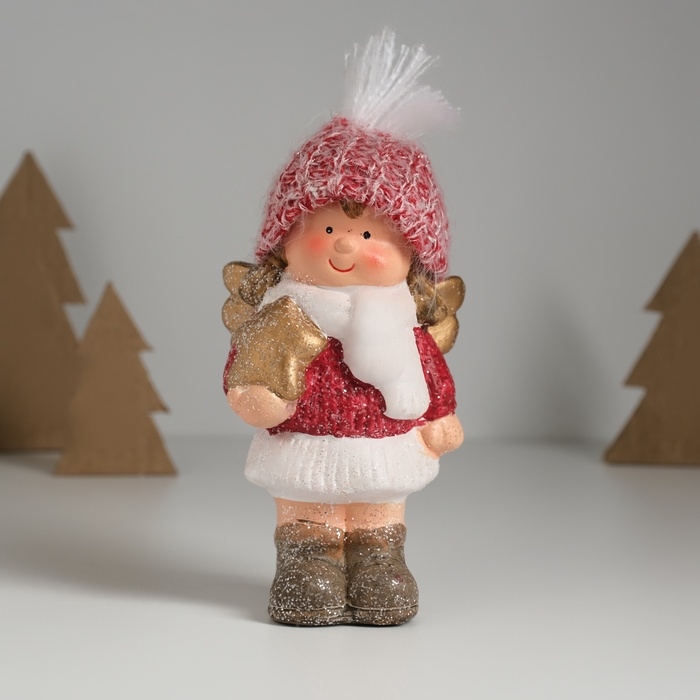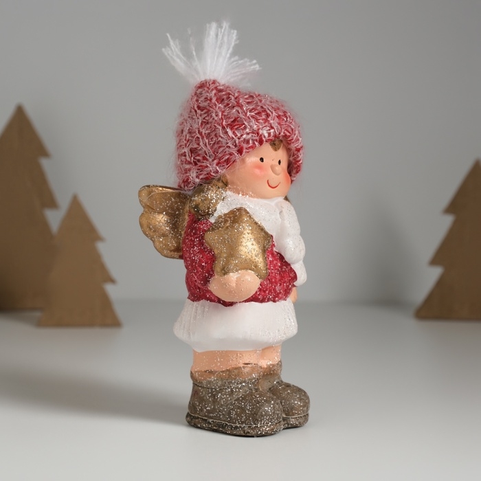 Сувенир керамика "Девочка-ангел в красном наряде, со звёздочкой" 7,5х5,5х17,5 см