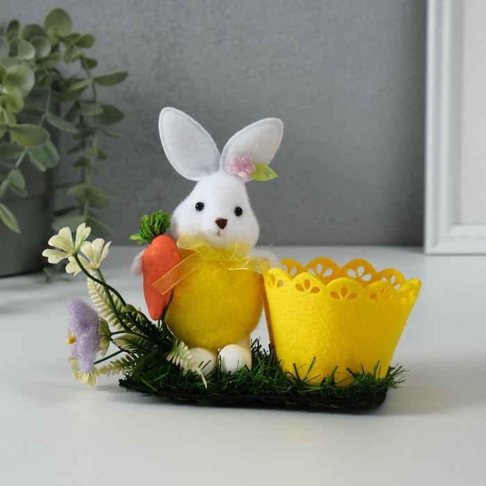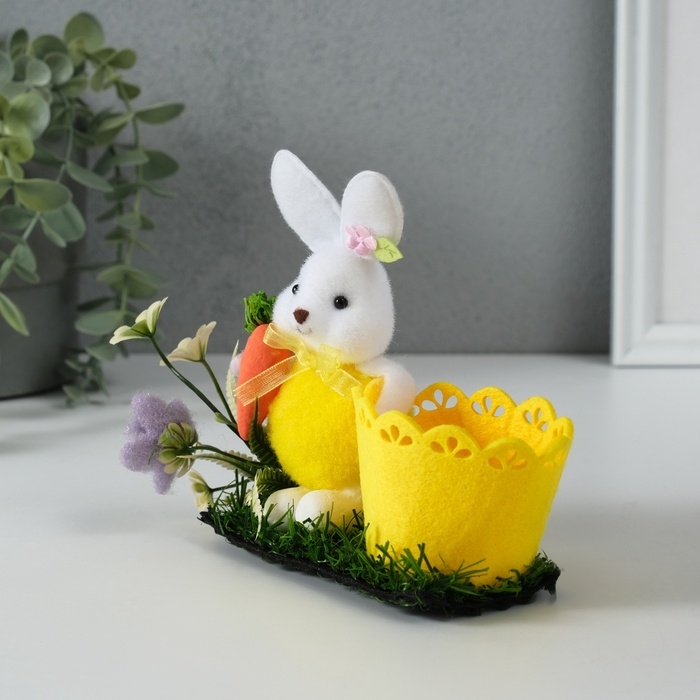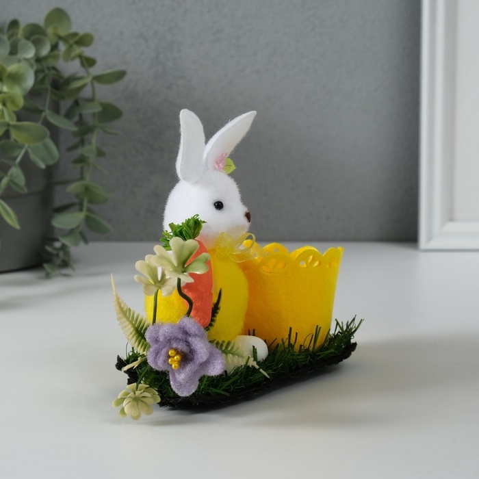 Сувенир "Зайка с морковкой около корзинки" 5х11,5х13,5 см