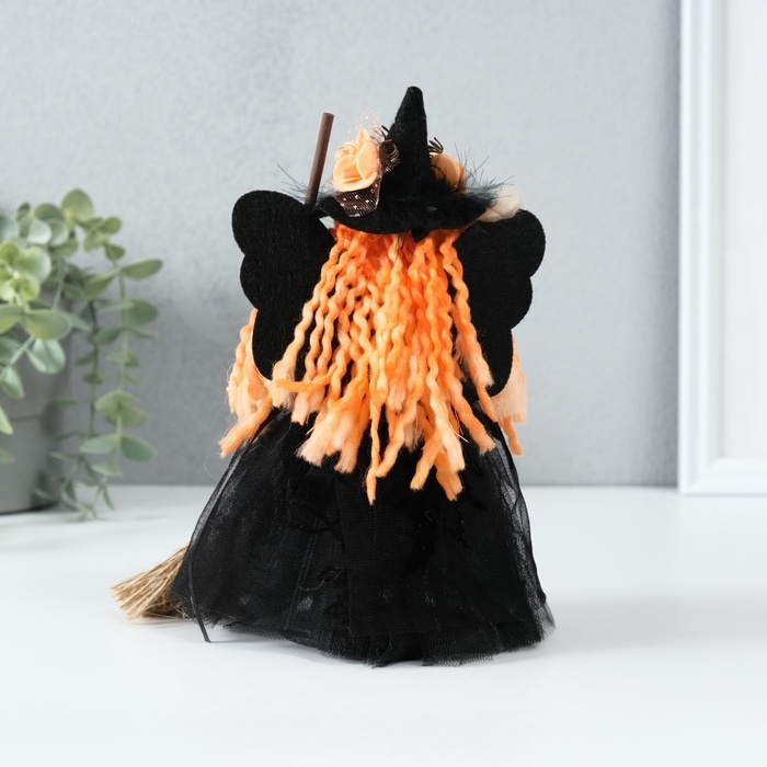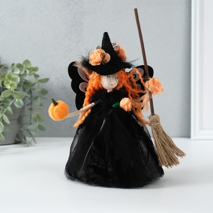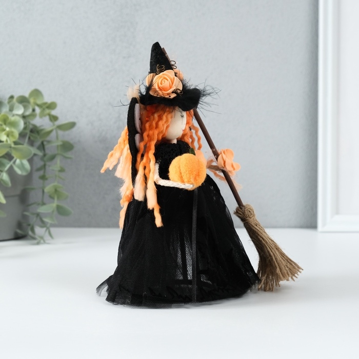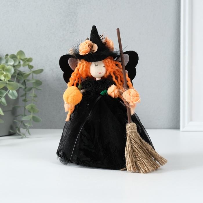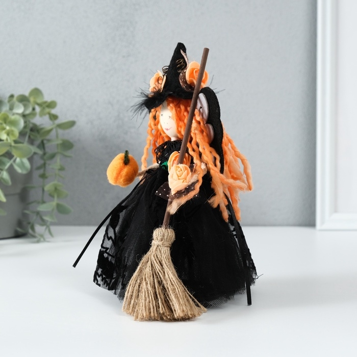 Кукла интерьерная "Ведьмочка в чёрном платье с метлой" 7х11,5х22 см