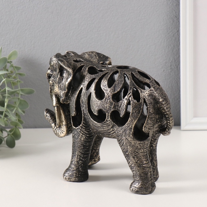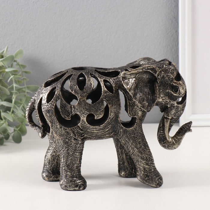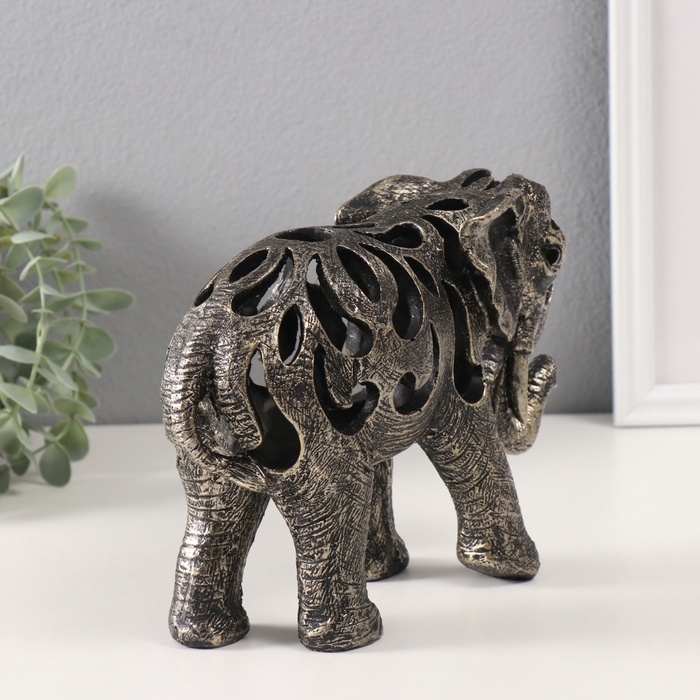 Сувенир полистоун "Слон с узорными вырезами" под бронзу 8,5х22х17 см