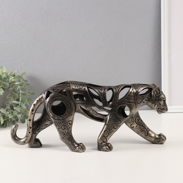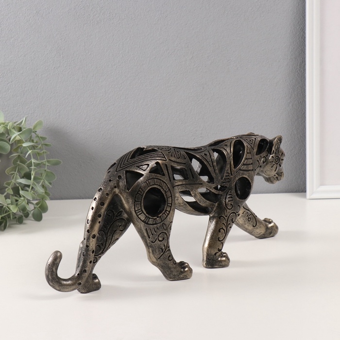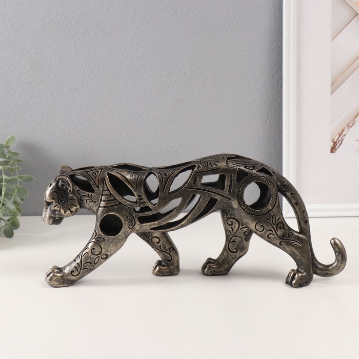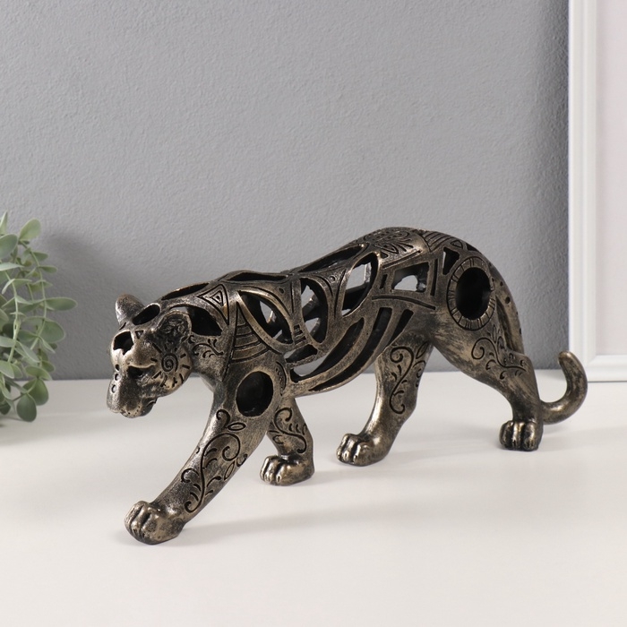 Сувенир полистоун "Дикая кошка в рисунках" под бронзу 6х37,5х15 см