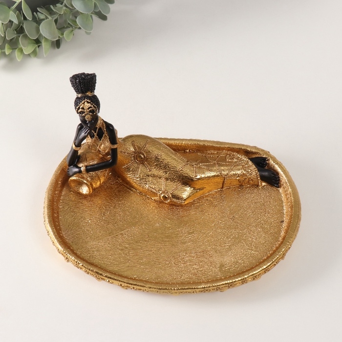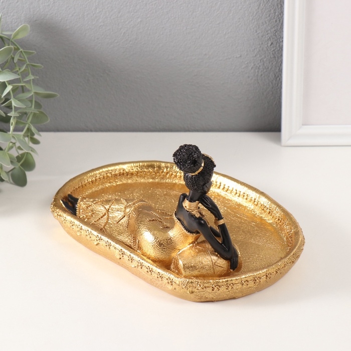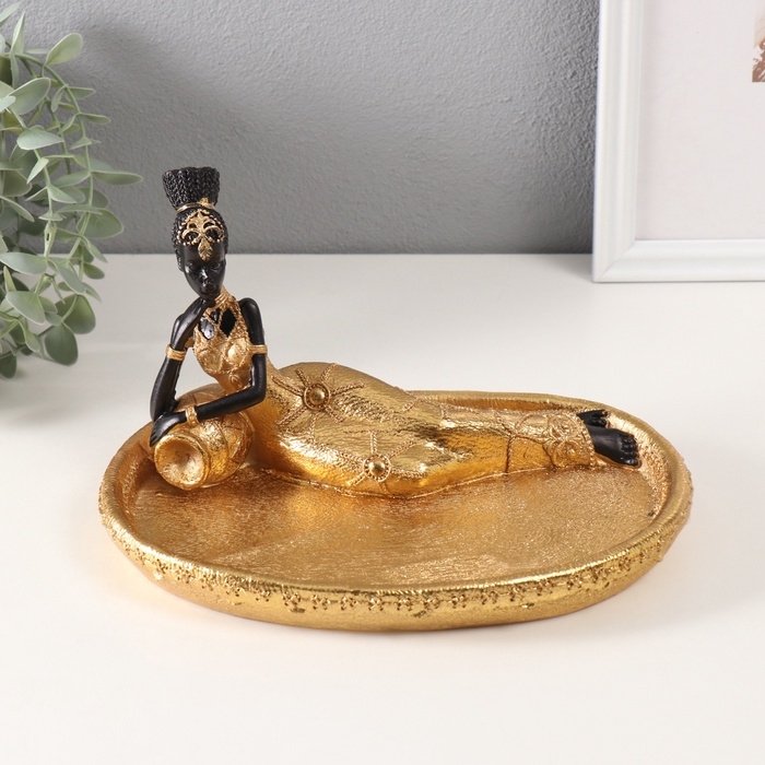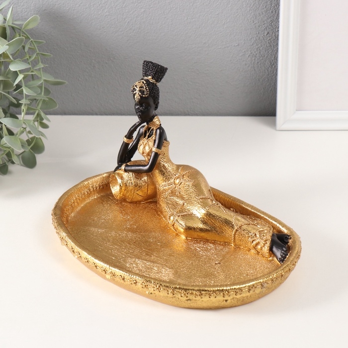 Сувенир полистоун подставка "Африканка Зэмба в золотом платье с вазой" 17х25х14,5 см