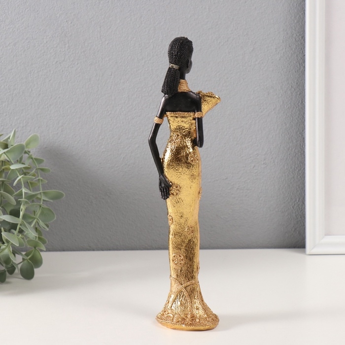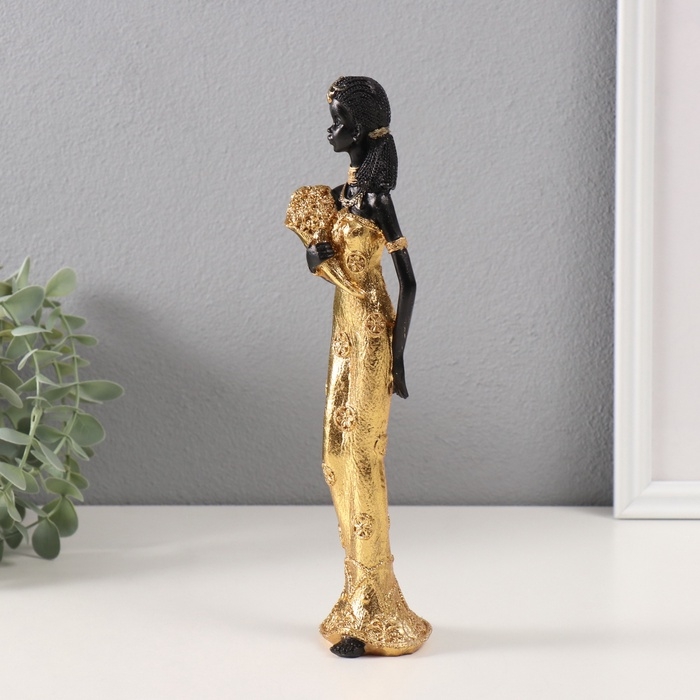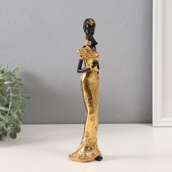Сувенир полистоун "Африканка Зэмба в золотом платье, с букетом" 5х6х26 см