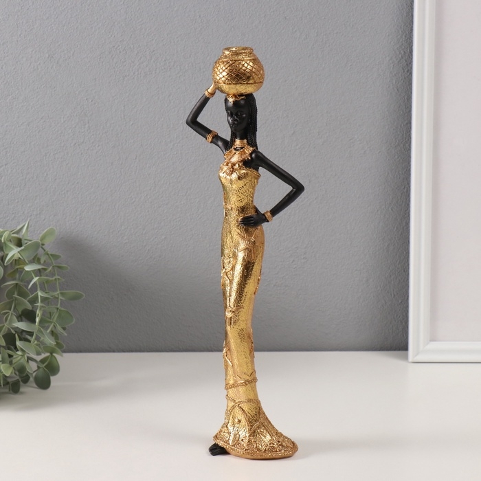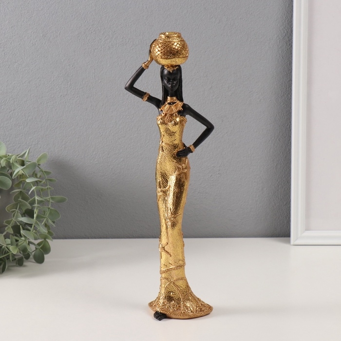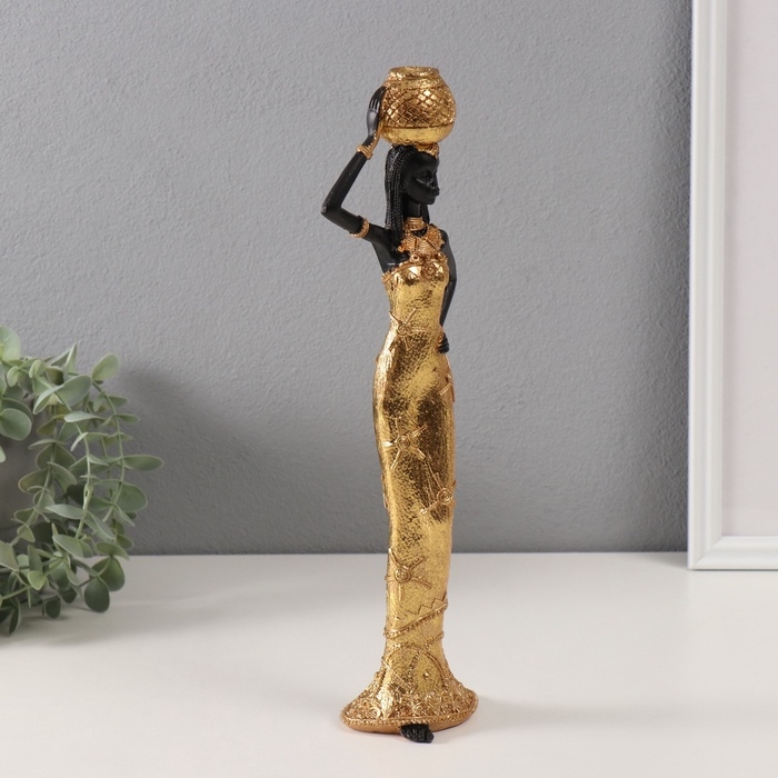 Сувенир полистоун "Африканка Зэмба в золотом платье, с корзиной" 6х9,5х33,5 см