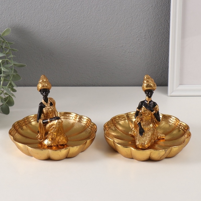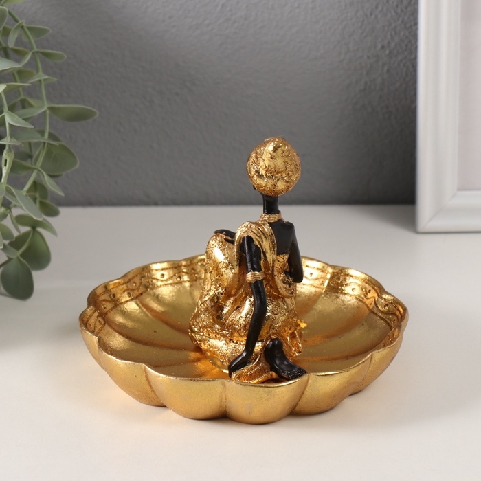 Сувенир полистоун подставка "Африканка в тюрбане, на цветке" золото 14х15х12,5 см МИКС