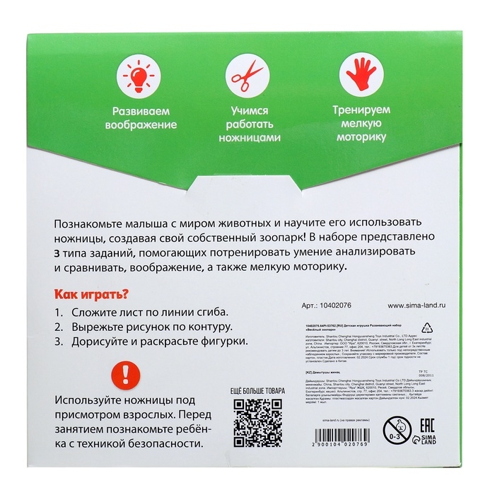 Развивающий набор «Забавные зверята», 20 заданий, 3+