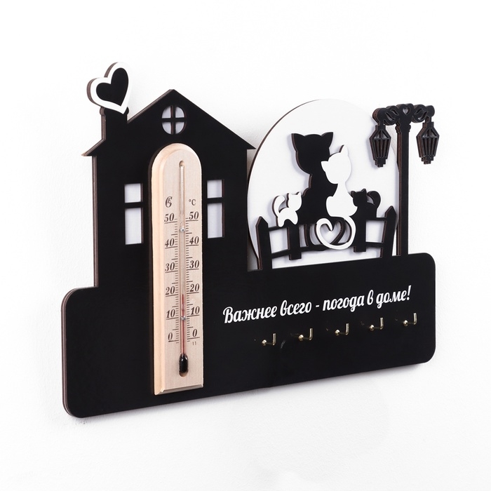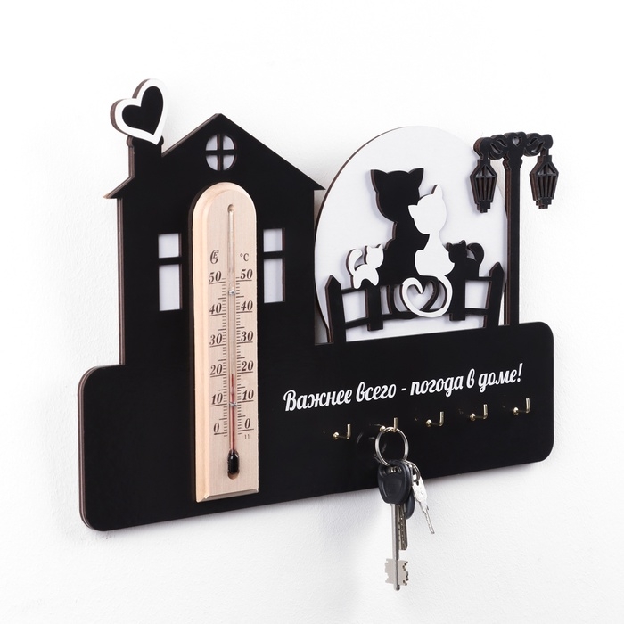 Ключница на стену "Важней всего - погода в доме", с термометром