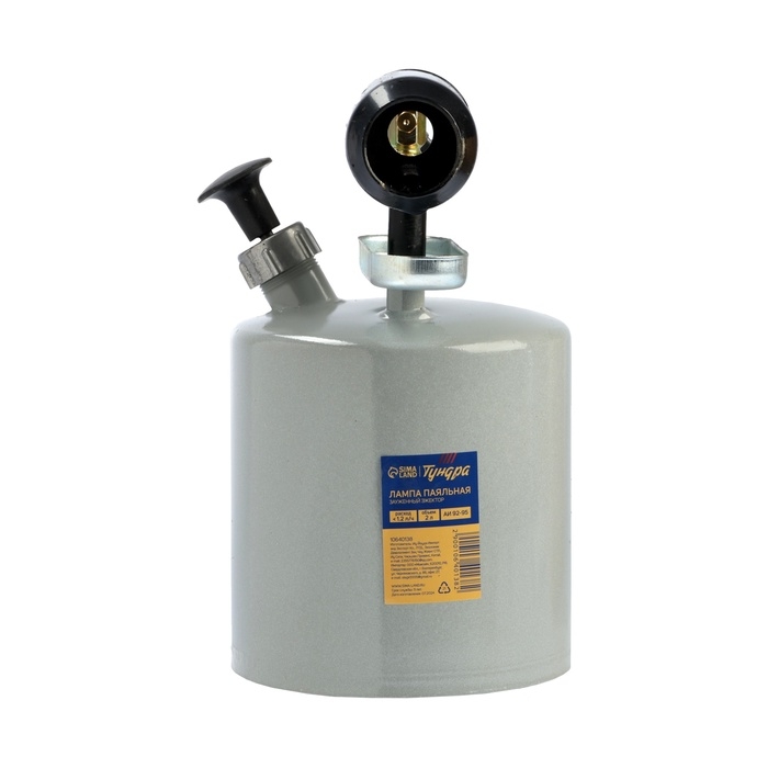Лампа паяльная ТУНДРА, зауженный эжектор, расход <1.2 л/ч, АИ 92-95, объем 2 л