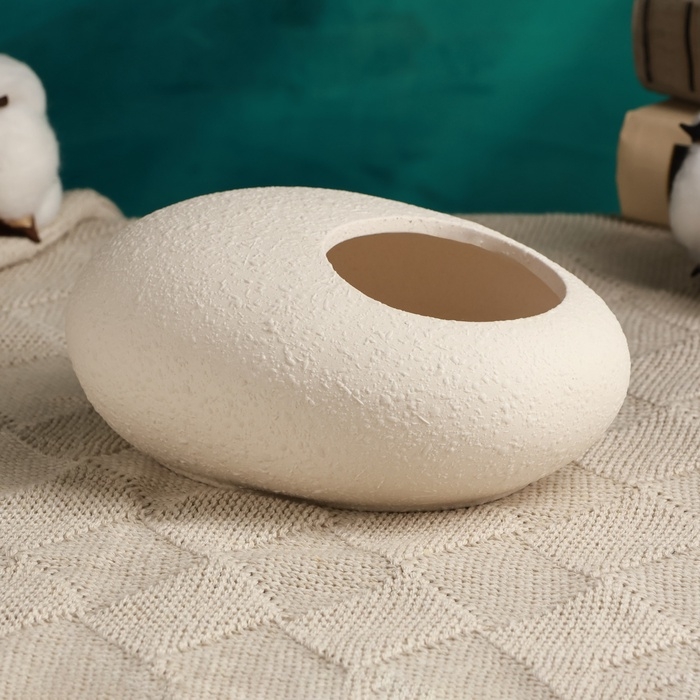 Кашпо - бонсайница "Галька" для кактусов и суккулентов, белое, 15х12х6см