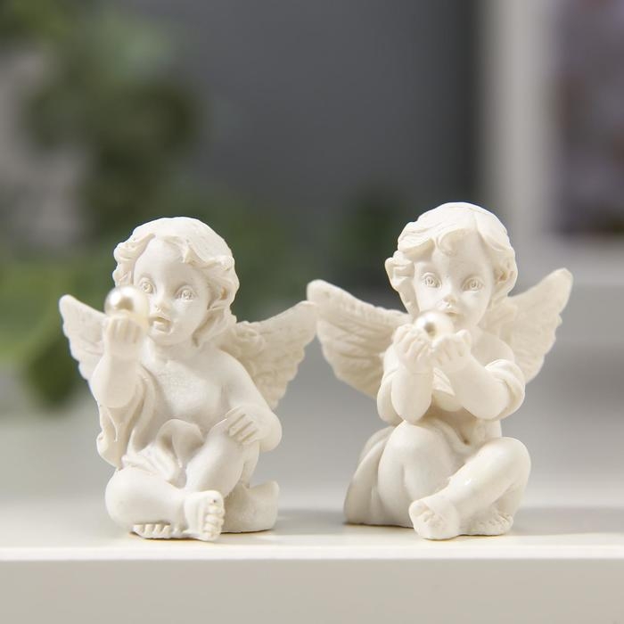 Сувенир полистоун "Ангелочек рассматривает жемчужину" МИКС 3,5х2,5х2,8 см