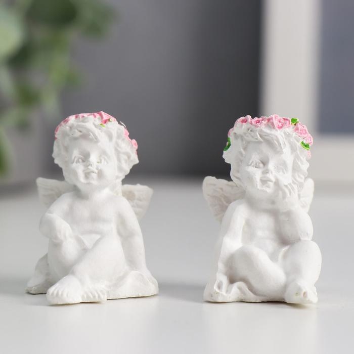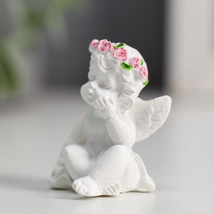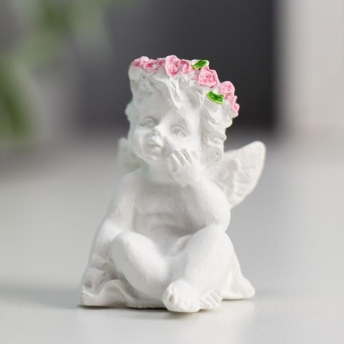 Сувенир полистоун "Ангел в венке из роз" 3,4х2,5х2,5 см МИКС
