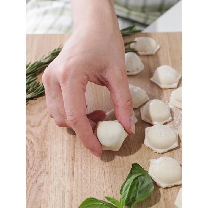 - Хорошенько присыпаем пельменницу мукой. Это поможет легко извлечь пельмени.