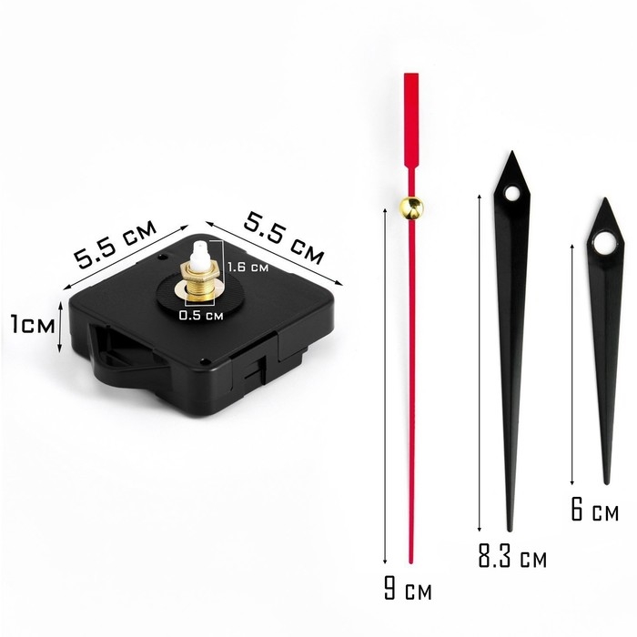 Часовой механизм со стрелками "Соломон-4", плавный ход, шток 16 мм, стрелки 59/83/90 мм