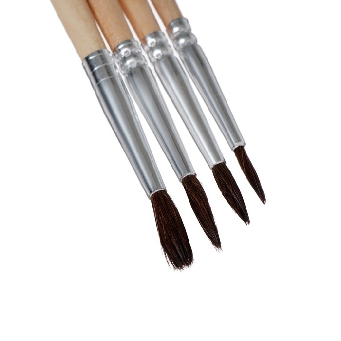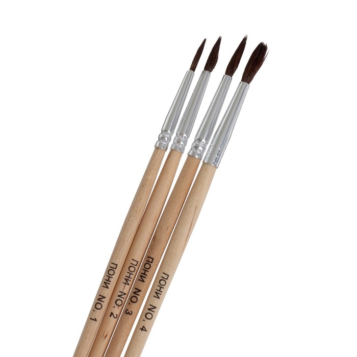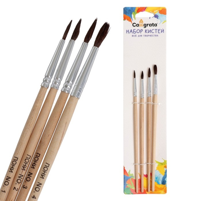 Набор кистей, "Пони", круглые, 4 штуки: № 1, 2, 3, 4, с деревянными ручками, на блистере